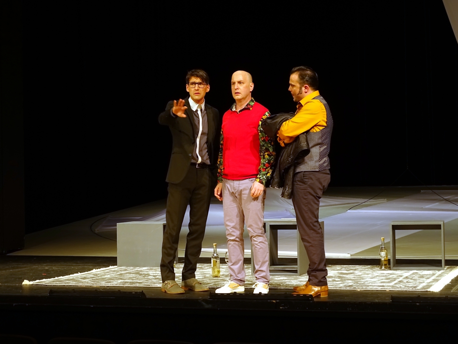 Im Schauspielhaus streiten sich drei Männer „Kunst"